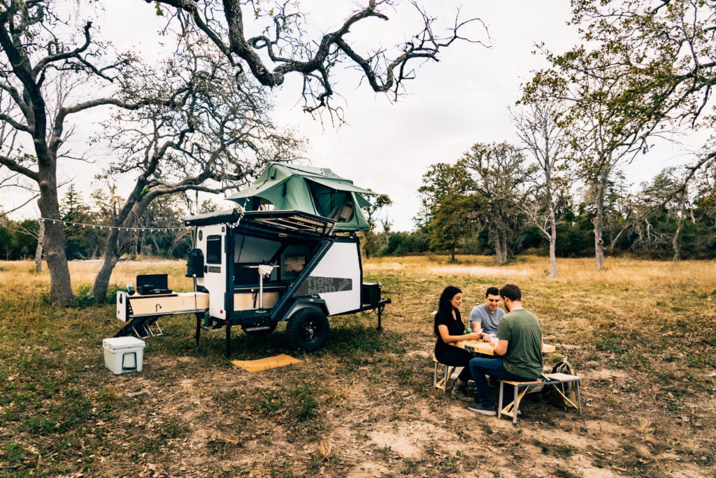 Then this new 2022 Taxa Tiger Moth Overland could be perfect for you. This is similar to a teardrop style camper but the interior bed converts into a bench style seat and you can move around a little more than.